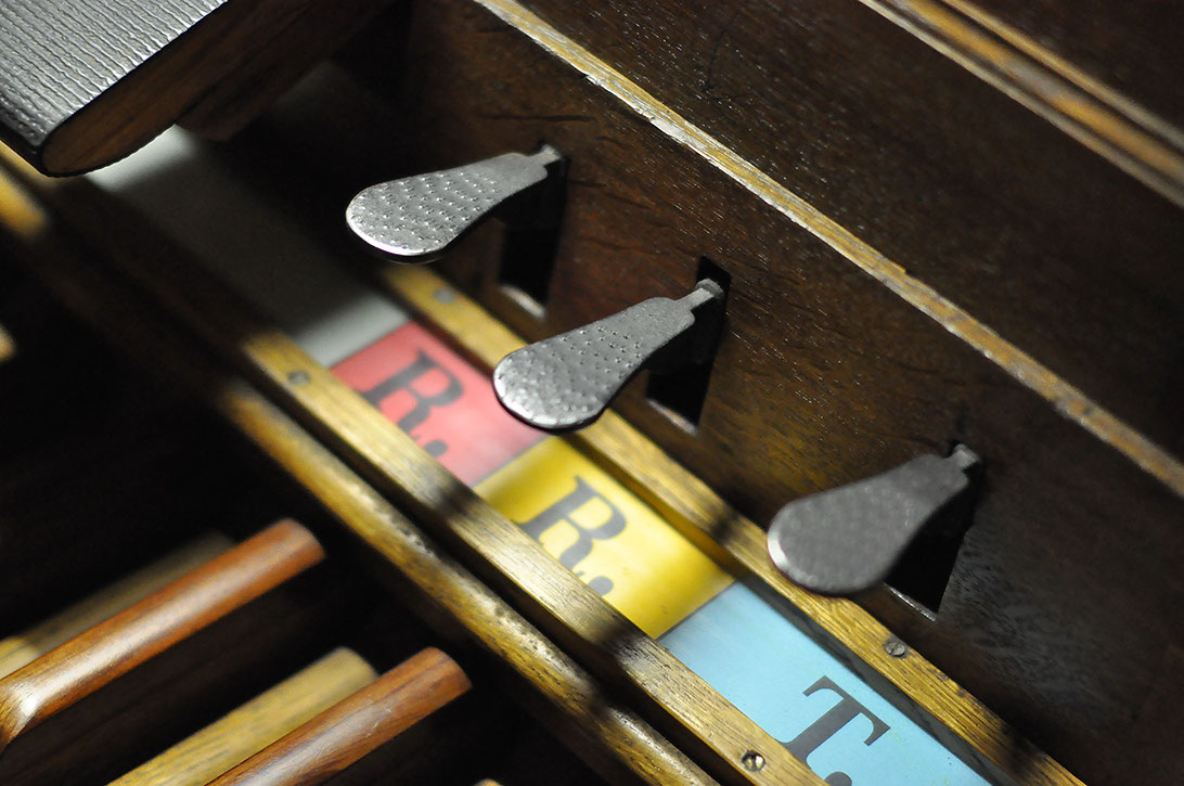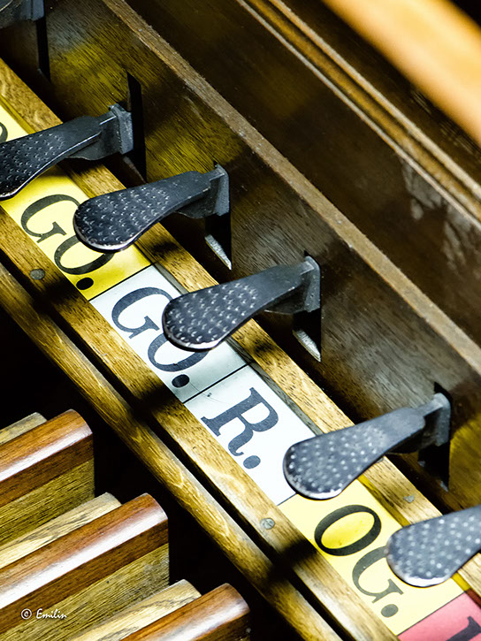 Orage, III/I, Tir I, Tir II, O.G, Anches Ped, Anches GO, Boîte Expressive, Anches Rec, II/I, Tremblant Rec