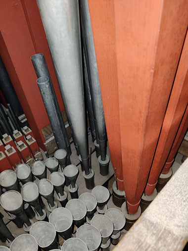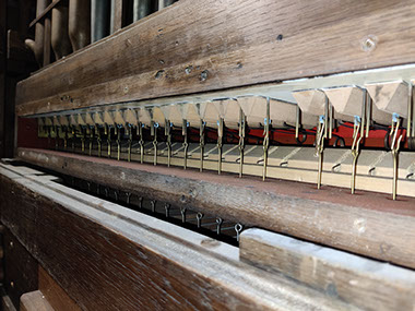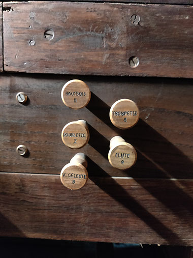 A signaler, lors de notre visite, nous avons trouvé l’alimentation électrique de l’orgue coupée. En l’absence de pompes manuelles il nous a été impossible de faire sonner l’instrument.