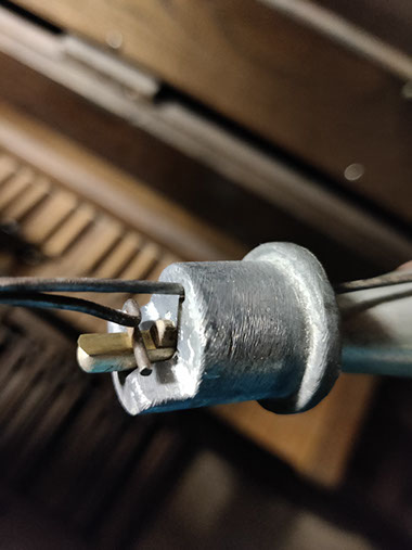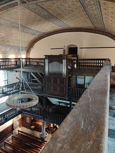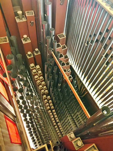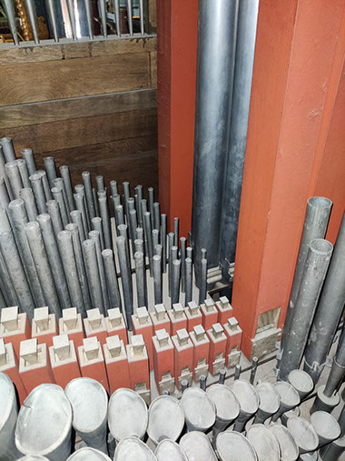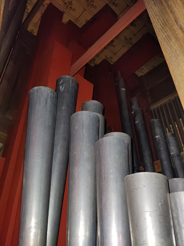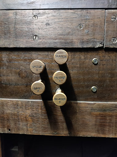 A signaler, lors de notre visite, nous avons trouvé l’alimentation électrique de l’orgue coupée. En l’absence de pompes manuelles il nous a été impossible de faire sonner l’instrument.